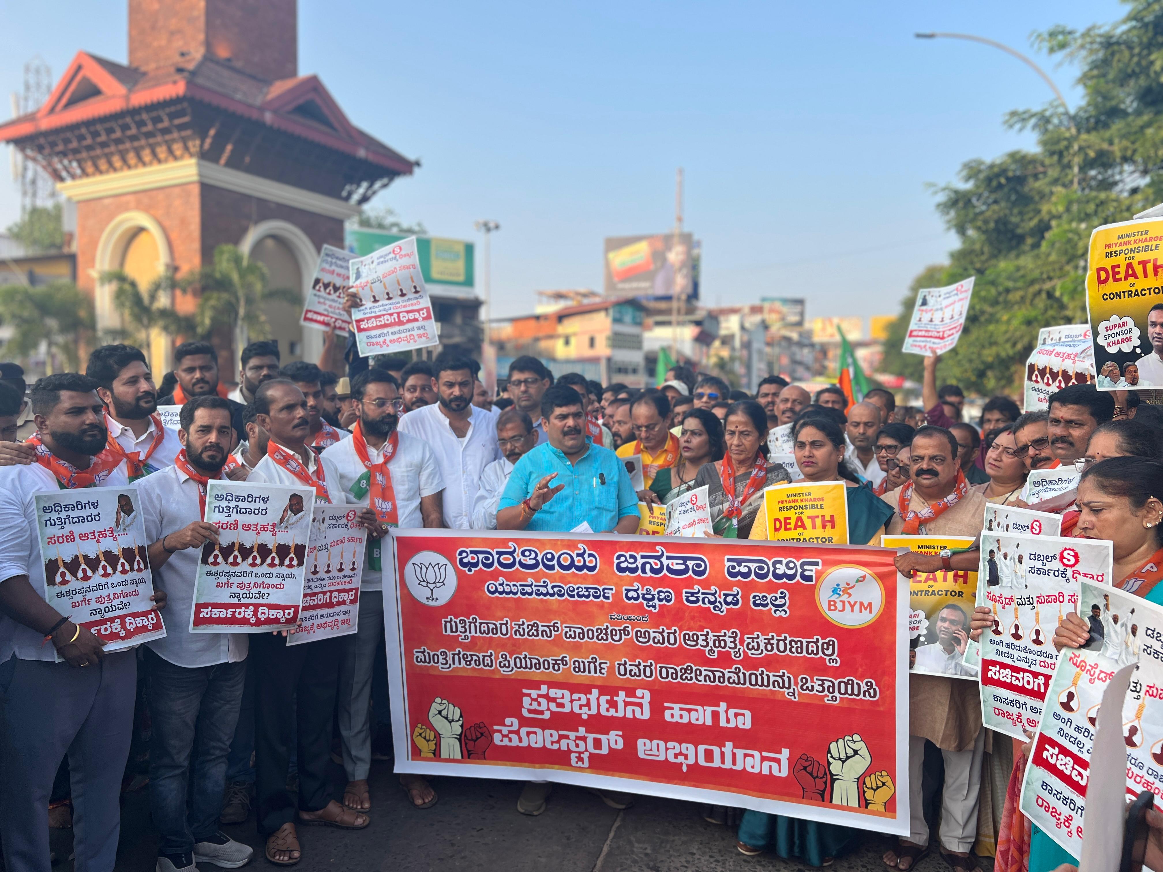 ನಗರದ ಮಿನಿ ವಿಧಾನ ಸೌಧದ ಬಳಿ ದಕ್ಷಿಣ ಕನ್ನಡ ಜಿಲ್ಲಾ ಬಿಜೆಪಿ ಯುವ ಮೋರ್ಚಾ ನೇತೃತ್ವದಲ್ಲಿ ನಡೆದ ಪ್ರತಿಭಟನೆ ಹಾಗೂ ಪೋಸ್ಟರ್ ಅಭಿಯಾನದಲ್ಲಿ ಮಾತನಾಡಿದ ಅವರು ಪ್ರಸ್ತುತ ಕಾಂಗ್ರೆಸ್ ಸರ್ಕಾರದ ಸಚಿವರ, ಶಾಸಕರ, ಹಾಗೂ ಅವರುಗಳ ಆಪ್ತ ಸಹಾಯಕರ ಒತ್ತಡ, ಬೆದರಿಕೆಗೆ ಸರ್ಕಾರಿ ನೌಕರರು, ಗುತ್ತಿಗೆದಾರರು, ಸಾಲು ಸಾಲಾಗಿ ಪ್ರಾಣ ಕಳೆದುಕೊಳ್ಳುವಂತಾಗಿದೆ. ಇದರಿಂದ ಪ್ರಾಣ ಕಳೆದುಕೊಂಡವರ ಕುಟುಂಬ ಬೀದಿಗೆ ಬರುತ್ತಿದ್ದಾರೆ. ಪ್ರಿಯಾಂಕ್ ಖರ್ಗೆಯ ಆಪ್ತರ ಕಿರುಕುಳದಿಂದ ಆತ್ಮಹತ್ಯೆ ಮಾಡಿಕೊಂಡ ಗುತ್ತಿಗೆದಾರ ಸಚಿನ್ ಪ್ರಕರಣವನ್ನು ಉಲ್ಲೇಖಿಸಿ ಮುಖ್ಯಮಂತ್ರಿ ಕುರ್ಚಿ ಅಲುಗಾಡುವ ಭಯದಿಂದ ಸಿದ್ದರಾಮಯ್ಯನವರು, ಹಾಗೂ ಮುಂದೆ ಮುಖ್ಯಮಂತ್ರಿ ಕುರ್ಚಿ ಕೈ ತಪ್ಪಬಹುದು ಎಂಬ ಭಯದಿಂದ ಡಿಕೆಶಿಯವರು ಪ್ರಿಯಾಂಕ ಖರ್ಗೆ ವಿರುದ್ಧ ಮಾತನಾಡುತ್ತಿಲ್ಲ ಎಂದರು.